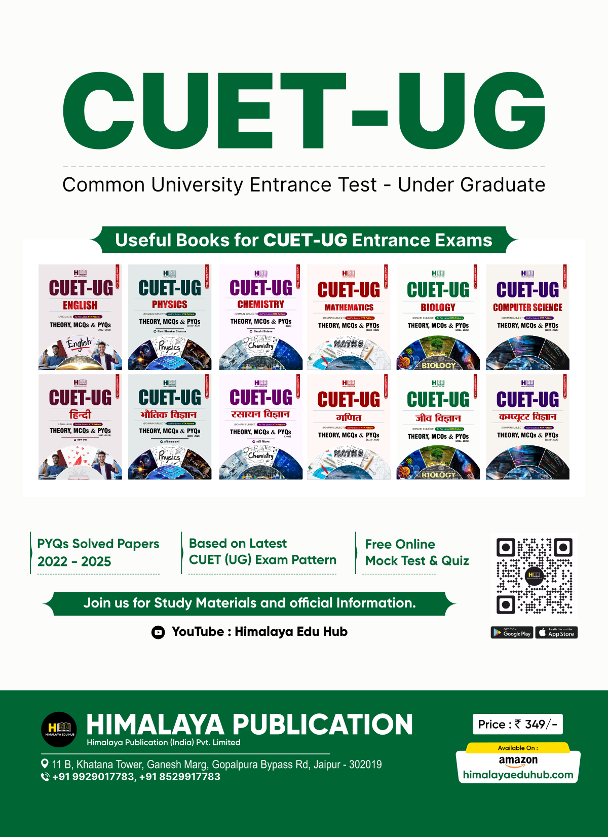 рдпрджрд┐ рдЖрдкрдХрд╛ рд▓рдХреНрд╖реНрдп CUET (UG) 2026 рдХреА рдЬреАрд╡ рд╡рд┐рдЬреНрдЮрд╛рди рдкрд░реАрдХреНрд╖рд╛ рдореЗрдВ рдЯреЙрдк рд╕реНрдХреЛрд░ рдХрд░рдирд╛ рд╣реИ, рддреЛ рдпрд╣ рдкреБрд╕реНрддрдХ рдЖрдкрдХреА рддреИрдпрд╛рд░реА рдХреЛ рдПрдХ рдирдИ рдФрд░ рд╕рдлрд▓ рджрд┐рд╢рд╛ рджреЗрдиреЗ рдХреЗ рд▓рд┐рдП рддреИрдпрд╛рд░ рдХреА рдЧрдИ рд╣реИред Himalaya Edu Hub рджреНрд╡рд╛рд░рд╛ рд╡рд┐рд╢реЗрд╖ рд░реВрдк рд╕реЗ рд╣рд┐рдВрджреА рдорд╛рдзреНрдпрдо рдХреЗ рд╡рд┐рджреНрдпрд╛рд░реНрдерд┐рдпреЛрдВ рдХреЗ рд▓рд┐рдП рддреИрдпрд╛рд░ рдпрд╣ рдорд╛рд░реНрдЧрджрд░реНрд╢рд┐рдХрд╛ NTA рдХреЗ рдирд╡реАрдирддрдо рдкрд░реАрдХреНрд╖рд╛ рдкреИрдЯрд░реНрди 2026 рдХреЗ рдкреВрд░реНрдгрддрдГ рдЕрдиреБрд░реВрдк рд╣реИред
