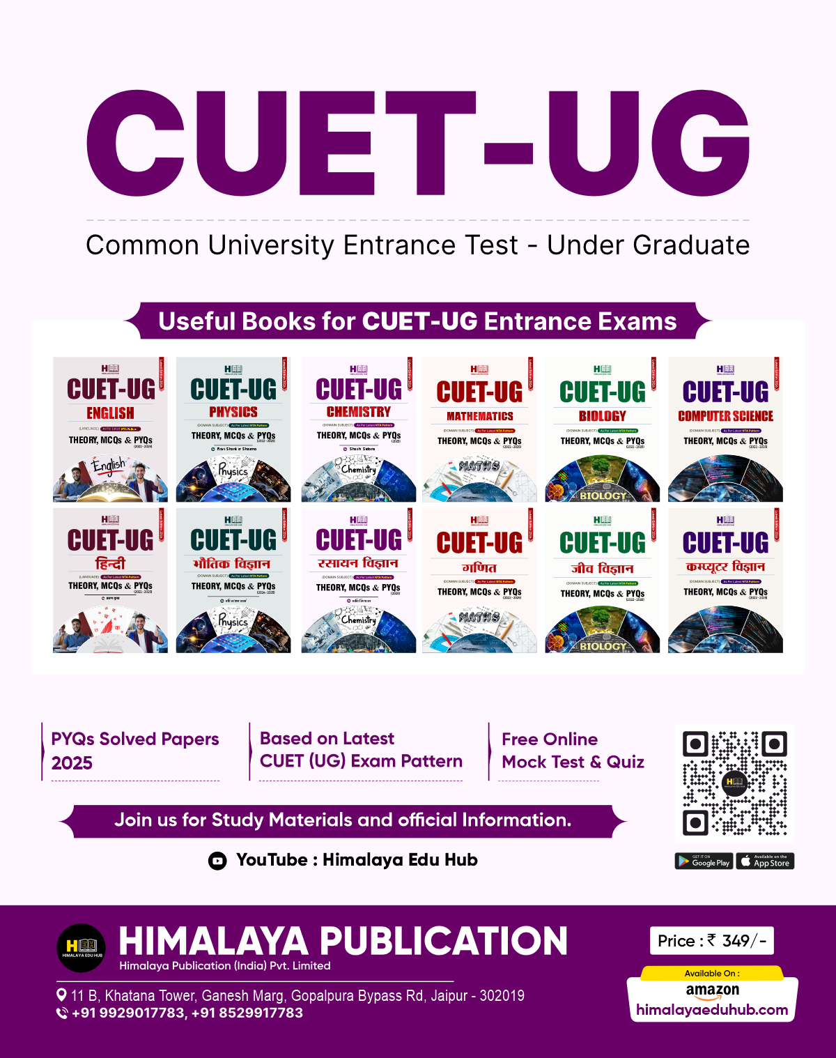 If your goal is to achieve excellence in the CUET (UG) 2026, this book is your most reliable and comprehensive companion. Specially curated by Himalaya Edu Hub for Hindi medium students, this guide is strictly aligned with the latest 2026 NTA examination standards.