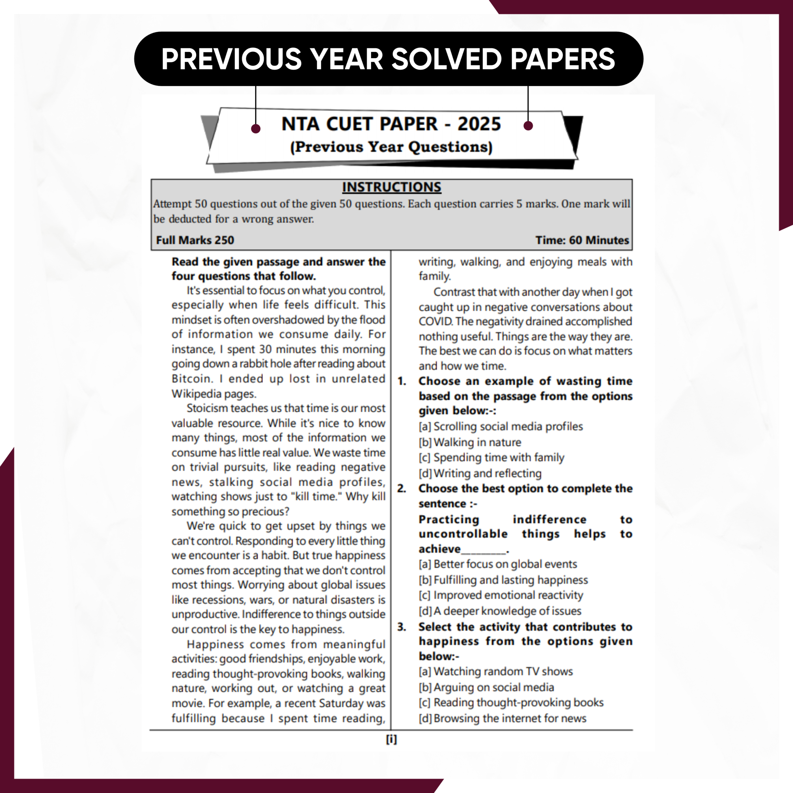 📘 CUET NTA Previous Year Solved Papers for hands-on practice